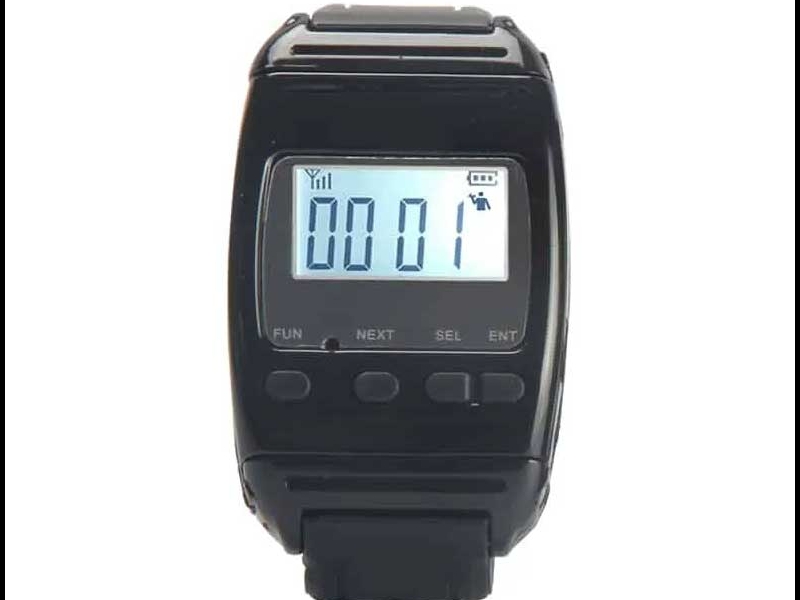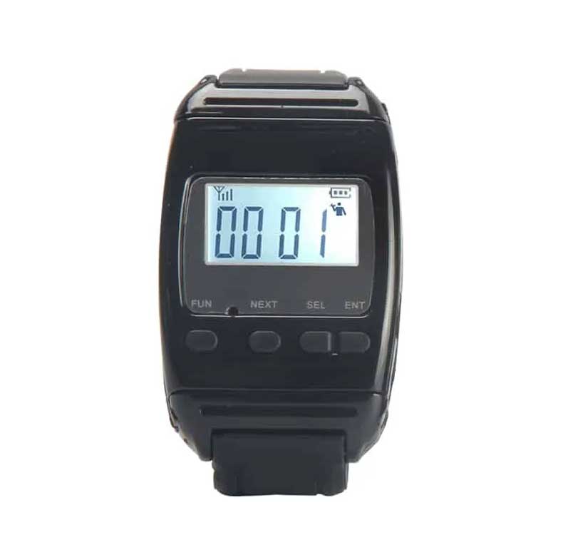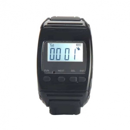 Đồng hồ báo gọi không dây Y-650 dành cho bệnh viện được đeo trên tay của y tá hoặc nhân viên phục vụ.