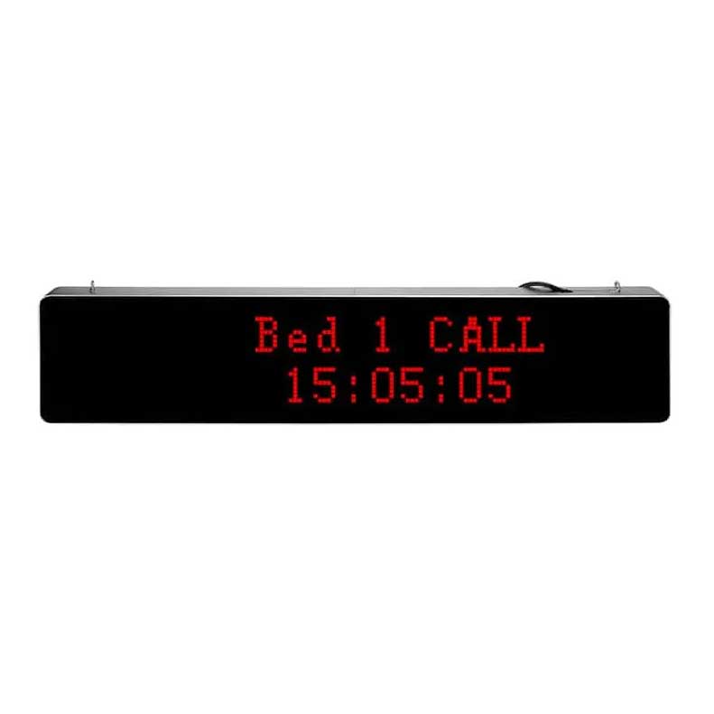 Màn hình LED đơn mặt, hiển thị 2 dòng, mỗi dòng tối đa 8 ký tự, có thể hiển thị số phòng, mã gọi hoặc thông tin khác.