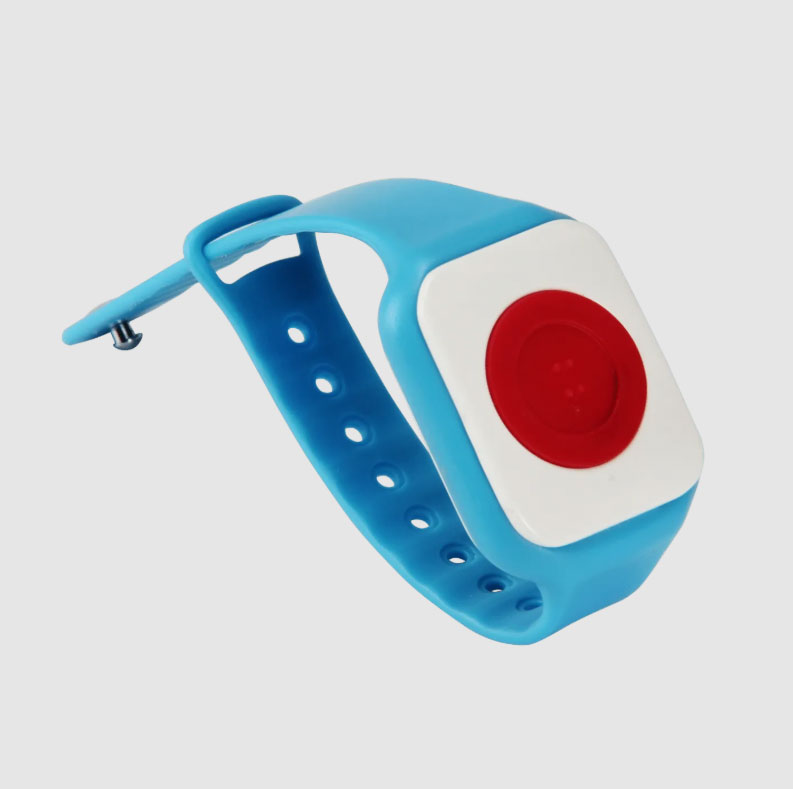 Nút gọi không dây Y-DS1-WR-WP dành cho bệnh viện được đeo trên tay bệnh nhân, giúp gửi tín hiệu khi cần hỗ trợ.